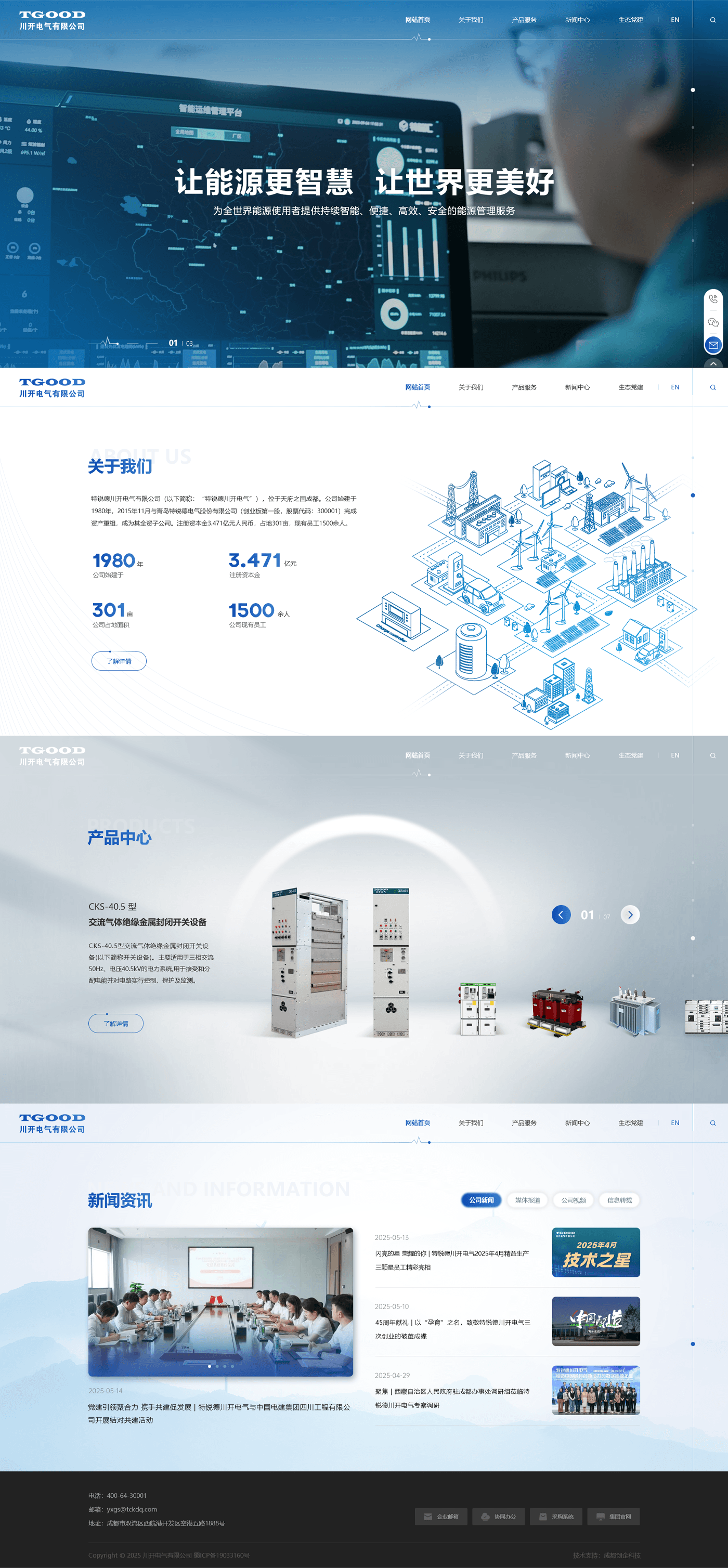 特銳德川開電氣有限( 以下簡稱:“川開電氣”),位于天府之 國成都。公司始建于 1980 年,注冊資本金 3.471 億元人民幣, 占地 301 畝,現有員工 2000 余人。 川開電氣是中國最大的箱式 電力設備研發生產基地,是西南最大的智能電氣設備研發制造基 地,也是國家級高新技術企業、國家知識產權優勢企業、四川省 首批“貢嘎培優”企業、綠色低碳鏈主企業。公司擁有 15 萬平 方米生產廠房、18